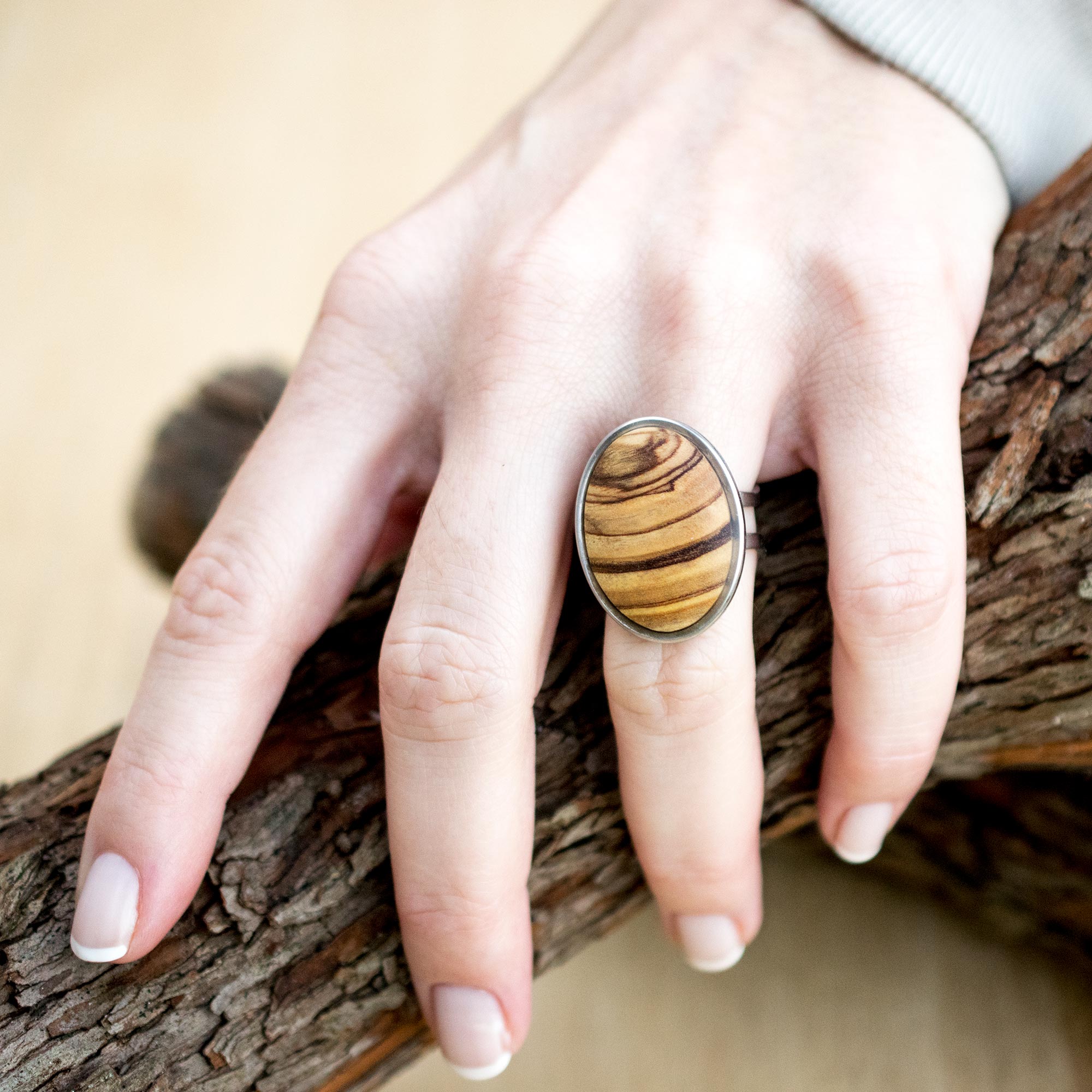 Keep it simple - adjustable stainless steel rings with olive wood